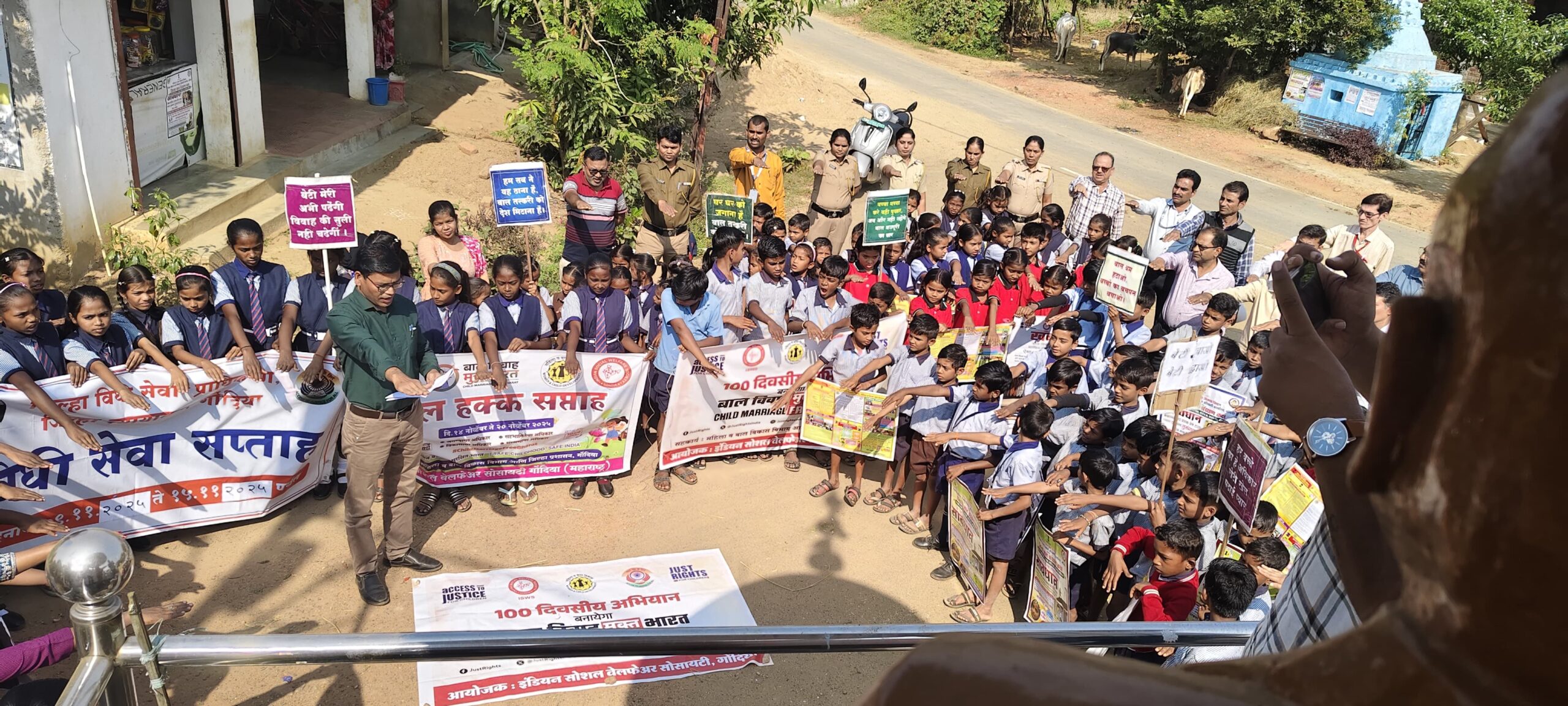 याप्रसंगी द्वारकाप्रसाद साठवणे सरपंच यांनी हिरवी झंडी दाखवत शाळेतील मुलांची रॅली गावात काढण्यात आली व गावकऱ्यांना बालकांच्या संरक्षणाविषयी घोषवाक्य च्या माध्यमातून संदेश देण्यात आले. व सर्वांना सपथ देण्यात आली. बालविवाह करण्याच्या कुप्रथेला गावातून हद्दपार करण्याच्या निर्धार यावेळी घेण्यात आला. या नंतर जिल्हा परिषद शाळेत बाल दीन साजरा करण्यात आले पंडित जवाहरलाल नेहरु यांच्या फोटो चे पूजन व माल्यार्पण मान्यवरांच्या हस्ते करण्यात आले. यानंतर मा गजानन गोबाडे जिल्हा बाल संरक्षण अधिकारी यांनी बालकांना जगण्याचा अधिकार, सहभागीतेचा अधिकार, विकासाचा अधिकार, संरक्षणाचा अधिकार असा मोलाचा संदेश दिला. बालविवाह ही अनिष्ट प्रथा असून त्याचे मूळ समाजात खोलवर रुजलेले आहेत. बालकांच्या शारीरिक, मानसिक आणि आरोग्यावर त्याचा परिणाम होत असतो.