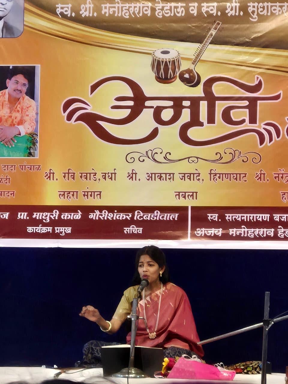 वर्धा प्रतिनिधी :- स्व. मनोहरराव हेडाऊ आणि स्व. सुधाकरराव वडतकर यांच्या स्मरणार्थ श्री. अजय हेडाऊ आणि श्री. हरीश वडतकर हे ‘स्मृतिगंध’ हा शास्त्रीय संगीताचा कार्यक्रम